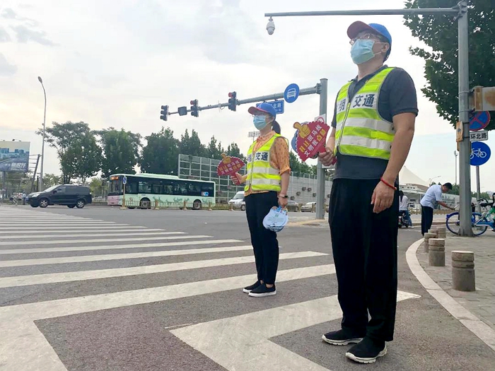 在9月8日的两个志愿服务现场,10名志愿者配合路口执勤交警和协管员维护交通秩序,引导转弯车辆礼让斑马线,同时对行人闯红灯、非机动车越线停车等违法行为进行劝阻,推广礼让斑马线的文明风尚,引导市民群众养成文明交通习惯,展现了北化集团青年职工朝气蓬勃的精神风貌和勇于担当的责任感、使命感,为助力北京2022年冬奥会和冬残奥会贡献青春力量。
