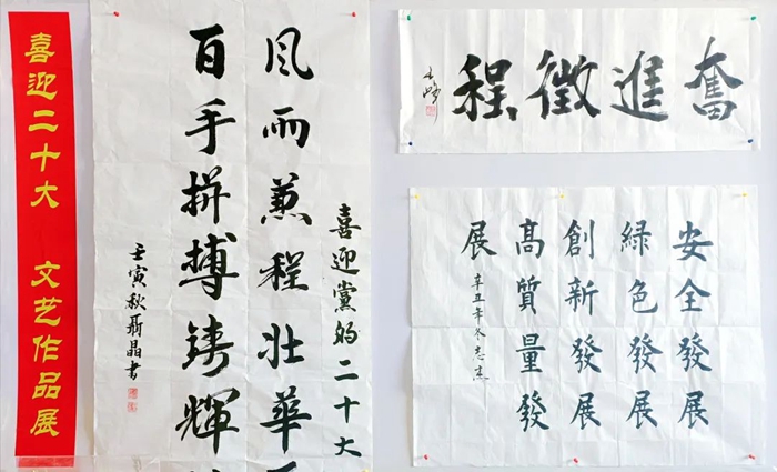 此次展览,从各单位上交的各类作品中精选出书法作品16件,摄影作品21件,绘画作品7件及手工艺作品10件进行现场展示。遒劲有力的书法作品,美不胜收的摄影作品和绘画作品,以及不同风格的手工艺作品洋溢着每日大赛 干部职工期盼党的二十大胜利召开的喜悦心情,也充分展现出大家丰厚的文化素养和多彩的业余文化生活。