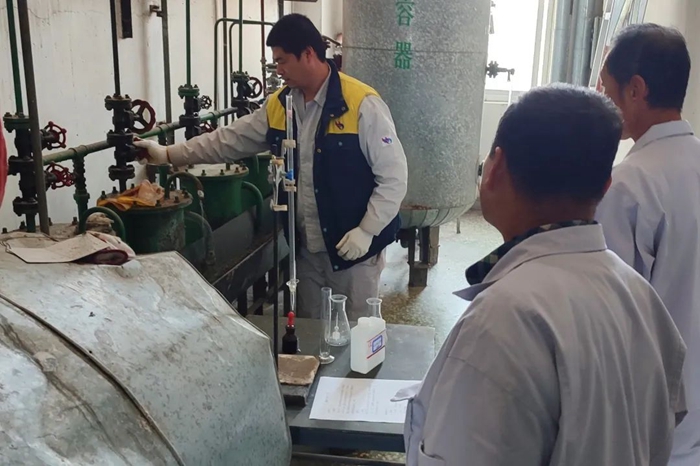 开炉前,华腾化工党总支副书记、总经理李胜强专门来到锅炉房检查指导工作,并慰问一线干部职工。李胜强强调,要牢固树立安全第一思想,认真落实化工集团疫情防控要求,做好个人防护,确保锅炉安全启动,确保锅炉岗位正常轮换运行。