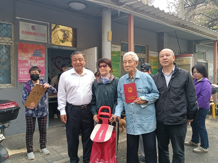 4月25日上午,东铁匠营街道第二社区会议室门前被一团喜庆气氛所环绕。宋庄路甲12号院的54户住户接过期盼已久的房产证,每个人的脸上都洋溢着幸福的喜悦。此时,化工厂“宋庄路甲12号院发放房产证仪式”正在这里举行。