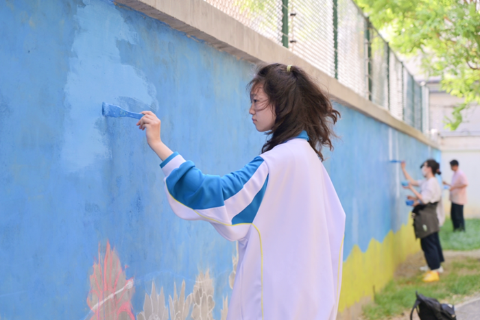 技师学院 彩绘幸福墙 校社共建美丽家园