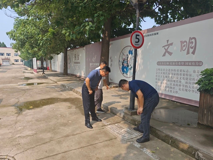 全域排查,织密安全 “防护网”。为有效排查隐患,安保部组织专业人员对园区开展“拉网式”防汛检查,重点聚焦排水系统、电力设施、危化品仓库等关键部位,清理排水管道杂物,保障雨水排放“主动脉”畅通;细致排查电力设备运行状态,筑牢供电 “稳定线”;加固危化品仓库防护措施,严防雨水倒灌引发安全风险。对检查中发现的问题,立即采取整改措施,做到不留死角、不留隐患。