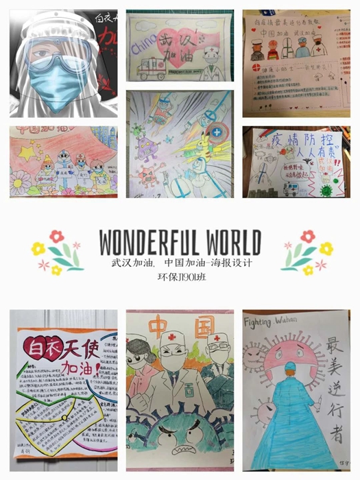 学生在家制作的抗“疫”海报