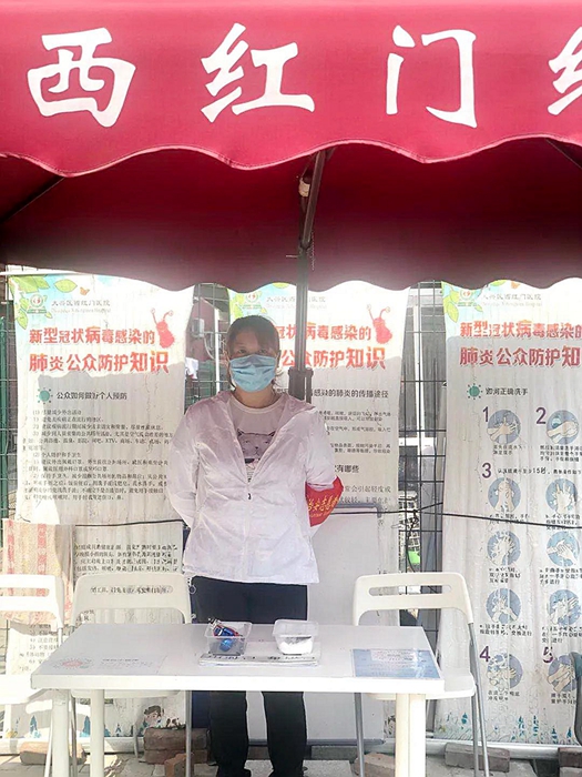 有时候也会碰到发牢骚的:大热天还要戴口罩……,出去进来怎么老得测体温……,每当这个时候,我都会笑着迎上去,尽力安抚他们急躁的情绪,看到我的耐心,他们也慢慢平复下来,配合我的工作。