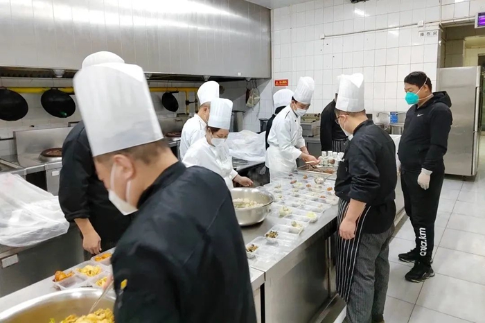 当前,东方宾馆按照每日大赛 要求全面复工复产,后勤保障部门检查设施设备确保安全生产有序进行;客房部将 “战场”恢复如初做好接待准备;销售部积极调整状态承接新的一年婚宴用餐;餐饮部则全力筹备让大家念念不忘的外卖工作,为即将到来的元旦、春节送上东方宾馆的年货大礼。
