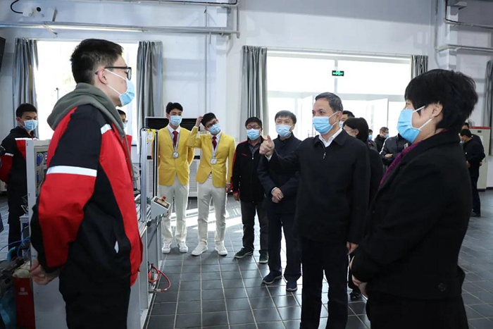 卢彦副市长一行分别来到学院数控实训现场、世赛集训基地、沃尔沃培训中心、奥迪职业学校、智能工厂实训车间,实地察看了现场教学、选手集训、职业技能培训、校企合作等工作开展情况。卢彦副市长详细了解了学院一体化课程改革、学制技师培养、学生就业发展、世赛基地建设、社会培训及对口帮扶等工作推进落实情况,仔细询问了现场学生的学习生活情况,并与备战第一届全国技能大赛和第46届世赛全国选拔赛选手和教师亲切交谈。