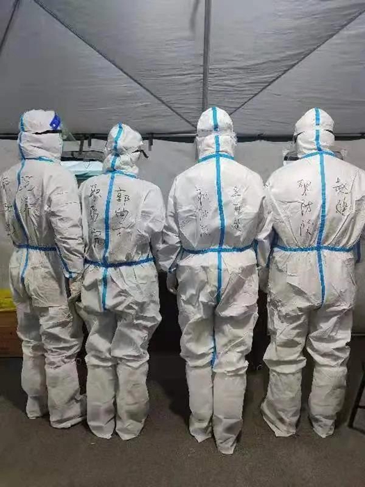 采样期间,因人员较多,采样工作都在室外进行。工作在最低温度达到零下10度左右的环境里,42名应急队员穿戴全副武装的防护服,不仅要直面寒冷天气的侵袭,还要克服医用防护服、医用防护眼镜、防护口罩等一层层防护用品所带来的不便。