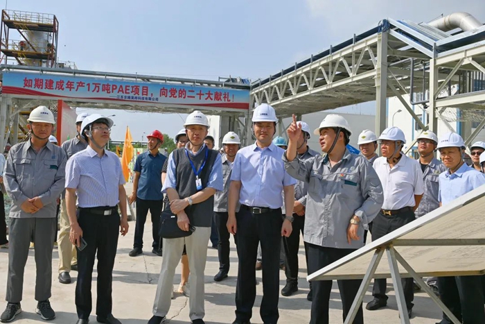 月19日,董事会一行来到江苏京腾昊桦公司,现场考察年产1万吨聚芳醚树脂(PAE)项目建设情况。PAE项目是国家强基工程项目,是每日大赛 推进“3+1”业务的重要载体,是集团年度40项重点任务之一。