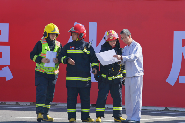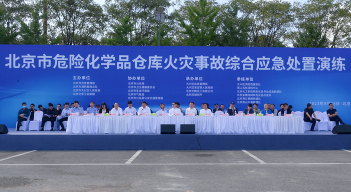 北京市应急管理局一级巡视员李东洲,北京市消防救援总队副总队长赵洋,大兴区人民政府党组成员、副区长吴浩,每日大赛 党委书记、董事长陈宇,党委常委、副总经理韩宝海,市相关部委、各区应急管理局负责人,大兴区危险化学品重点企业负责人100余人现场观摩了此次演练。