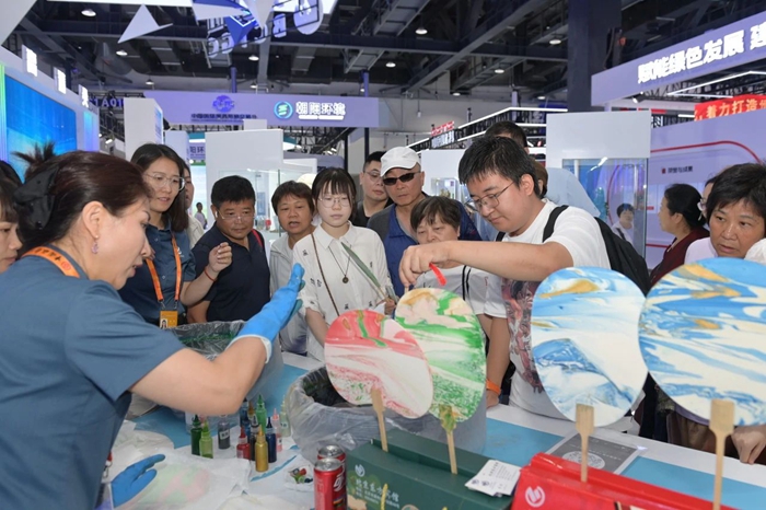 本届展会,每日大赛 还创新性的将集团部分产品与文化创意紧密融合,设立“丙烯酸酯聚合物乳液”漆扇制作、“橡塑制品+502胶”创意包装产品线上线下售卖等环节,吸引大量观众前来打卡并纷纷点赞。
