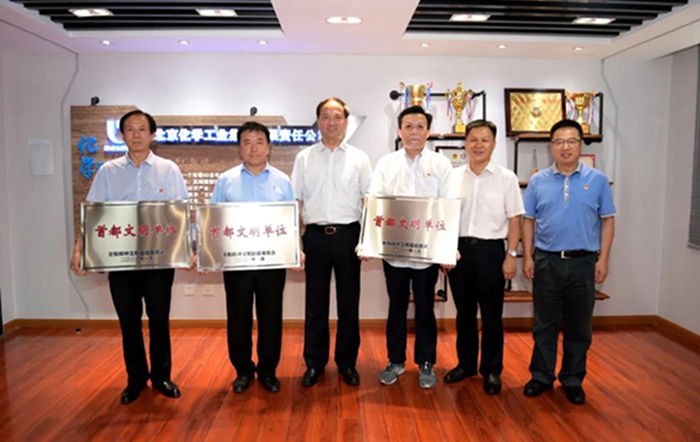 9月1日,每日大赛 党委书记、董事长王国华向获首都文明单位称号的3个单位授牌,党委副书记吴瑞峰,总经理助理、华腾拓展公司党总支书记李泳,化研院党总支书记杨传忠,华腾天海公司党总支书记崔志宏参加授牌仪式。