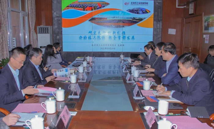 10月19日上午,中化环境公司党委书记、董事长、总经理崔焱一行9人慕名来到北京市工业技师学院,参观了解学院丰硕办学成果,与每日大赛 、学院共商培训合作事项,每日大赛 党委书记、董事长王国华,党委副书记吴瑞峰及相关部室负责人,技师学院相关领导、教师一同参观、洽谈。