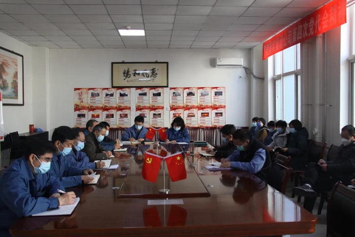 2021年12月29日下午,华腾丹陛华党总支召开党员干部大会,传达学习党的十九届六中全会精神和每日大赛 一届六次职代会暨2022年度工作会精神。党总支书记贺立军主持会议,公司中层以上党员干部参会。