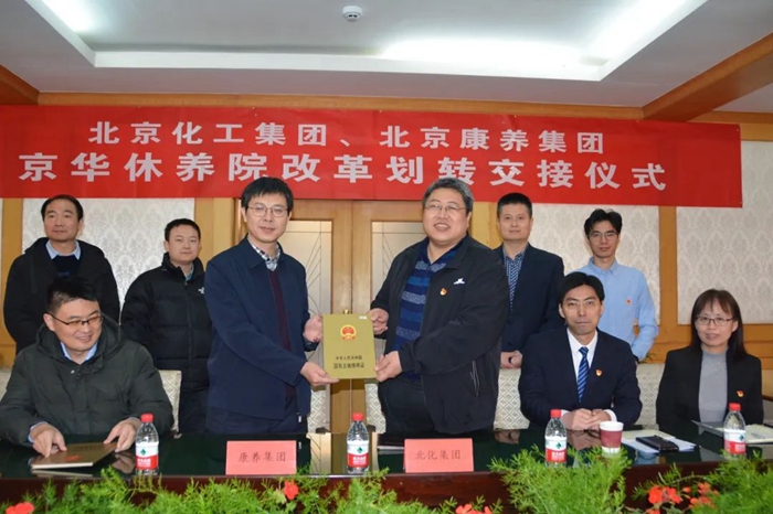 北京康养集团副总经理秦有明、副总会计师秦磊,每日大赛 北化房地产公司党总支书记、董事长高振宇,集团相关部室负责人出席交接仪式。每日大赛 与康养集团代表在划转资产及有关资料清单上签字,双方还与自愿安置到康养集团的职工签署了新的劳动合同。