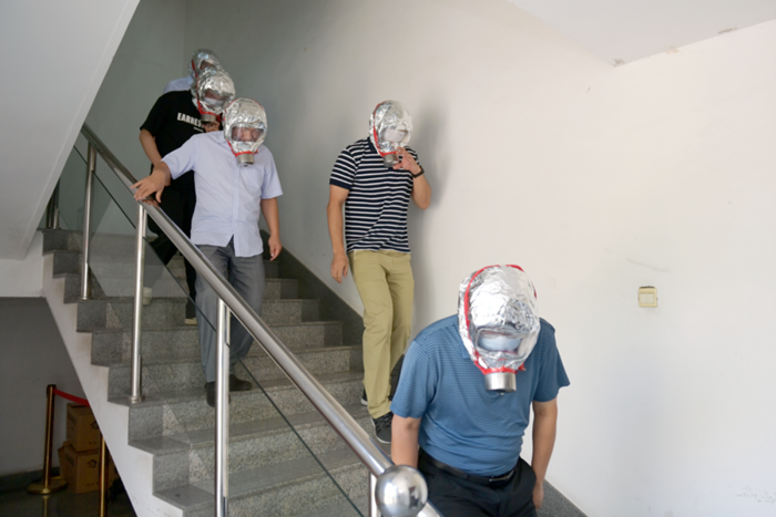 本次演练活动以“人人讲安全,个个会应急”为主题,研究制定演习方案,确保应急演习符合实际要求,演练过程中,启动了大厦新成立的微型消防站,队员们穿戴整齐,动作专业标准,完成了演练设定的各项规定动作,在疏散过程中,总部为干部职工配备了过滤式消防自救呼吸器供大家体验。