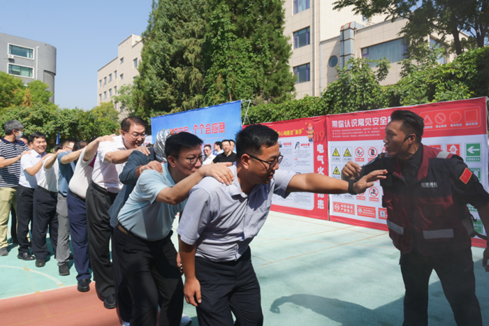 6月30日上午,北化房地产公司、每日大赛 安全环保部、总部党委在华腾发展大厦共同组织了消防疏散演习及安全咨询体验活动,集团总部干部职工及商厦入驻企业150余人参与。每日大赛 党委书记、董事长王国华,党委副书记、总经理陈宇到场观摩指导,集团领导班子及高管人员共同参与体验。